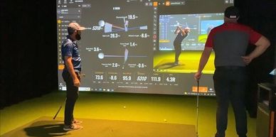 Undercover driving range, Trackman Sim Room and Golf Lessons in our indoor Coaching Sim room with golf instructor, Luke Garel